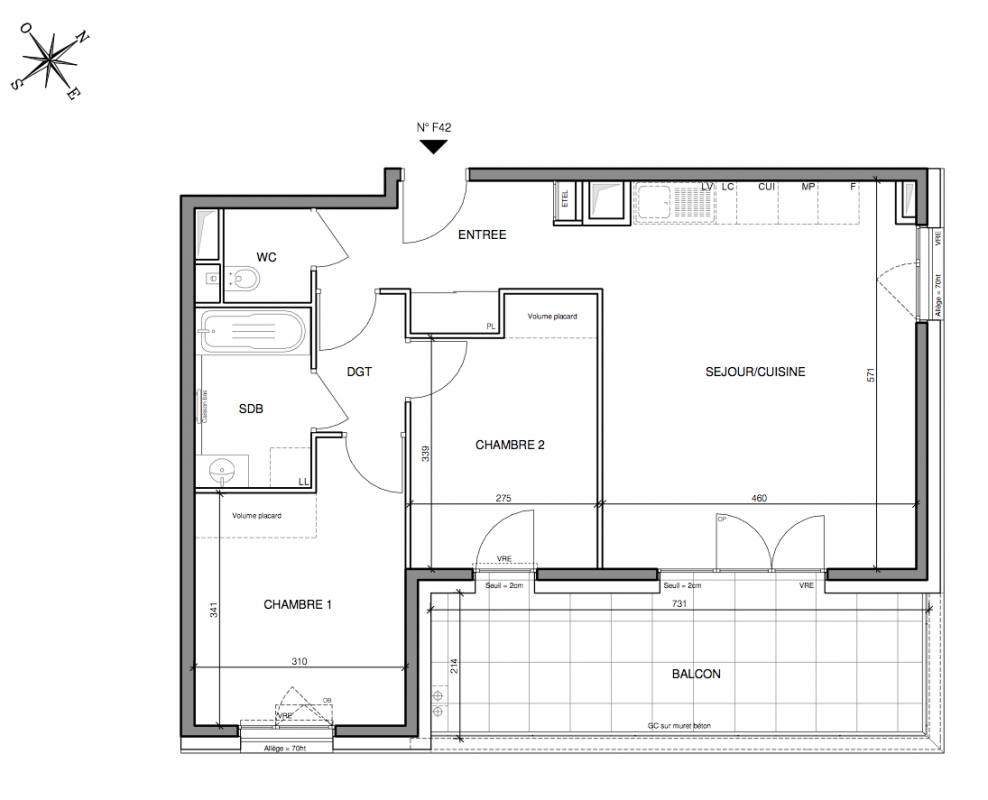 496 000€ Appt. T3 63.7m2 4ème