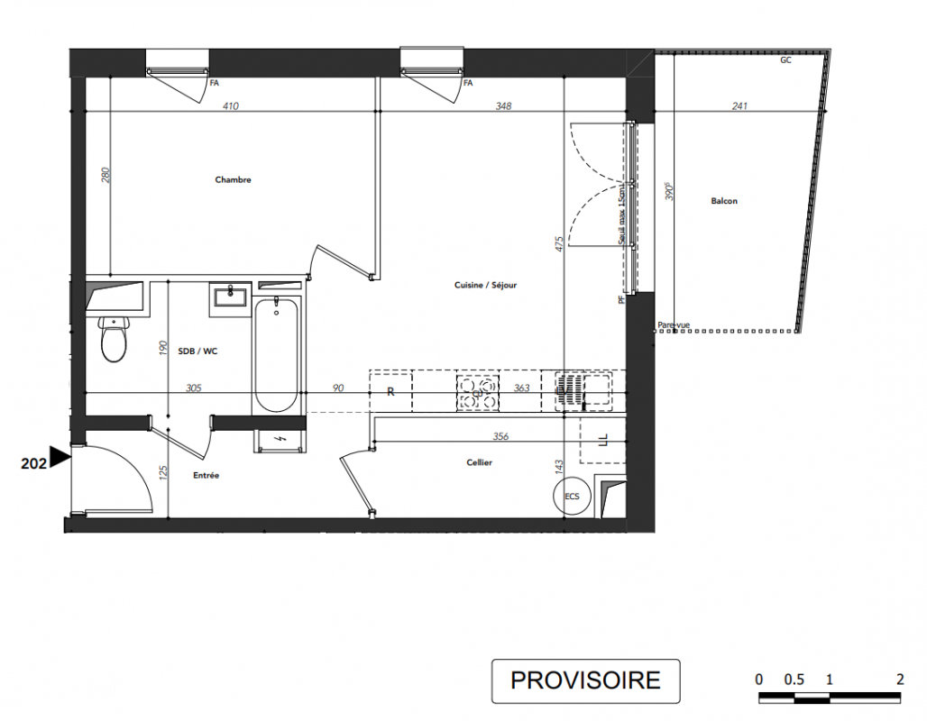 263 400€ Appt. T2 46.7m2 2ème