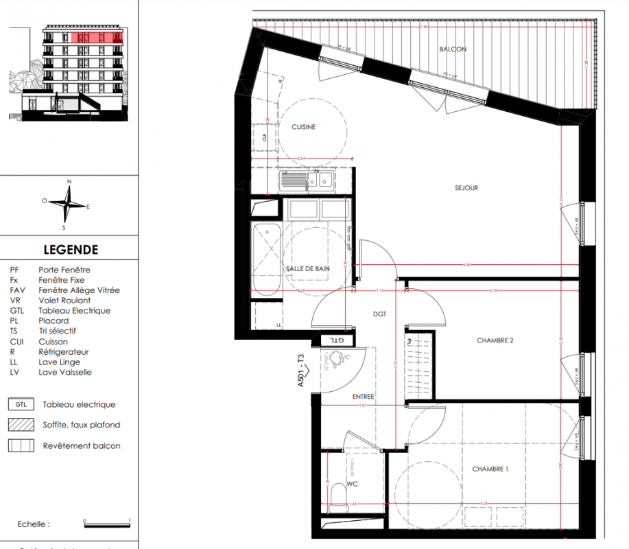 268 000€ Appt. T3 64.32m2 4ème