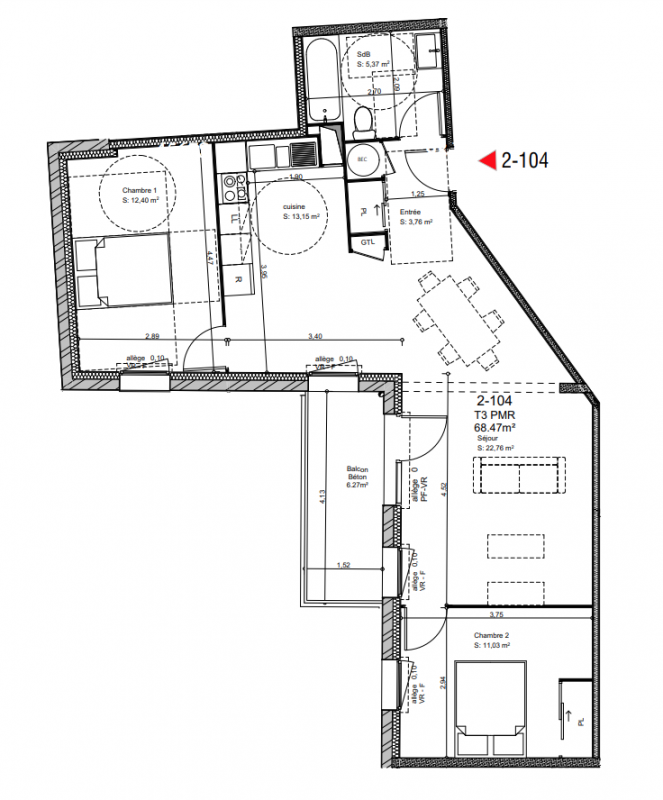 | Voir | Disponible | 169 800€ | 2103 | Appt. | T3 | 69.7m2 | 1er | Disponible | 169 800€ | Voir |