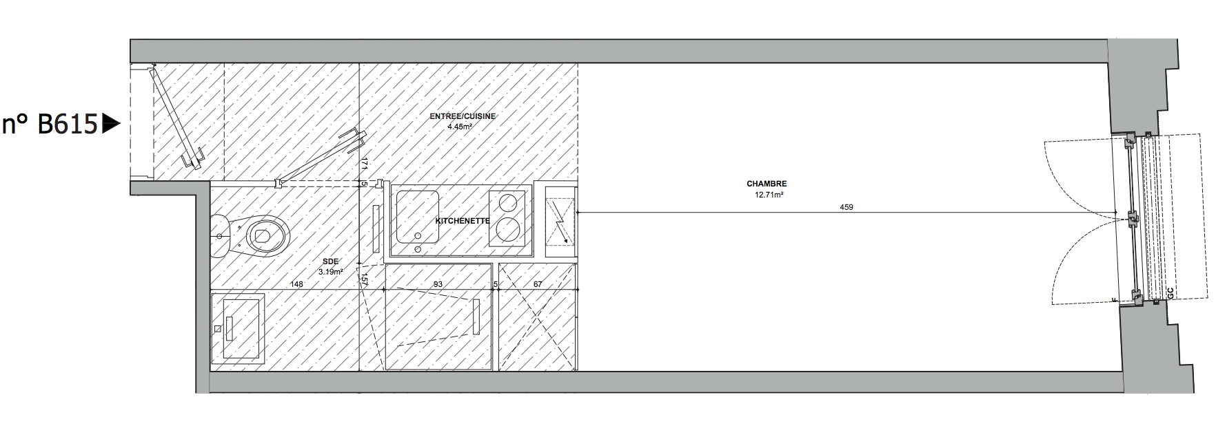 123 300€ Appt. Studio 17.18m2 4ème