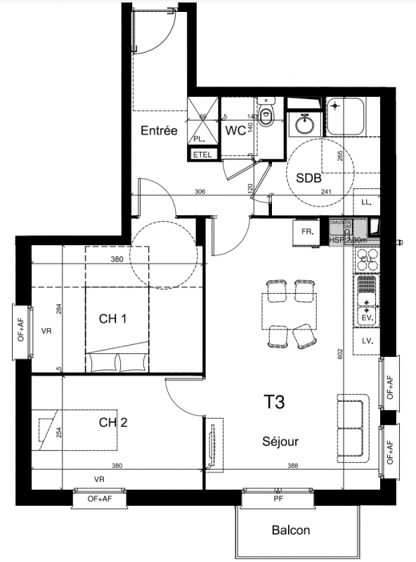 273 019€ Appt. T3 60m2 2ème