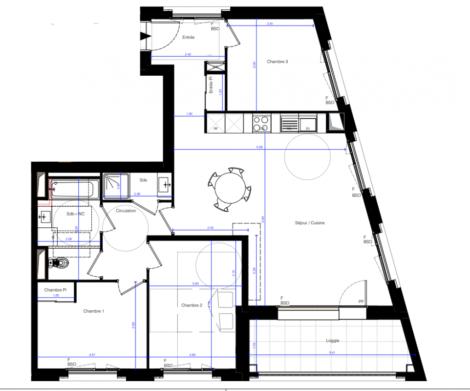 *Pour les logements du bâtiment T1 : brise-soleil à lames orientables.