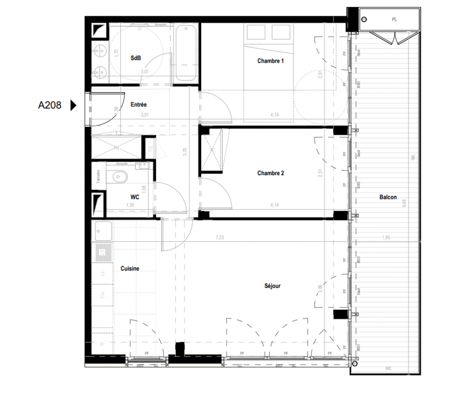 866 680€ Appt. T3 76.4m2 2ème