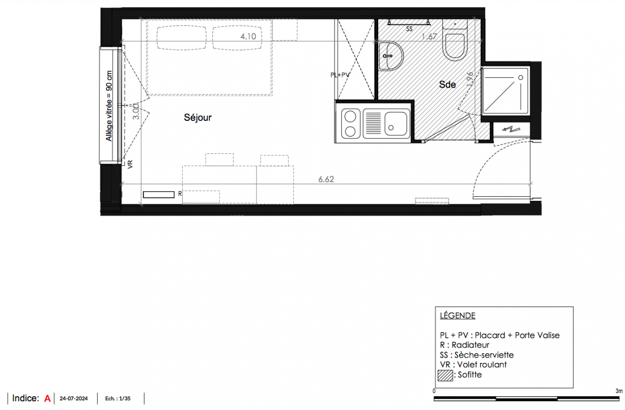 168 120€ Appt. Studio 18.85m2 3ème