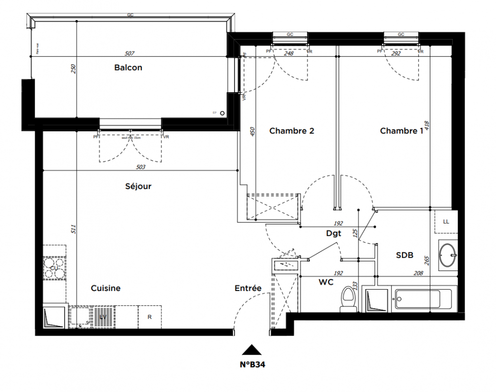 397 600€ Appt. T3 64.02m2 0-RDC
