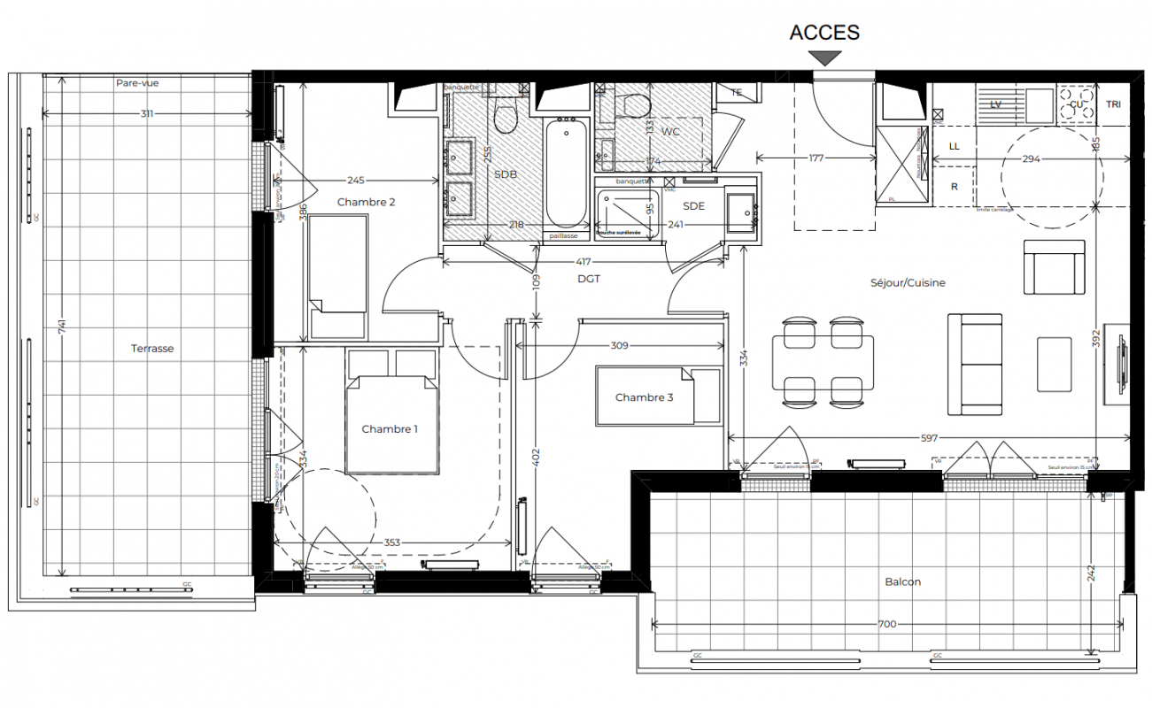| Voir | Disponible | 412 000€ | A05 | Appt. | - | 60.5m2 | 0-RDC | Disponible | 412 000€ | Voir |