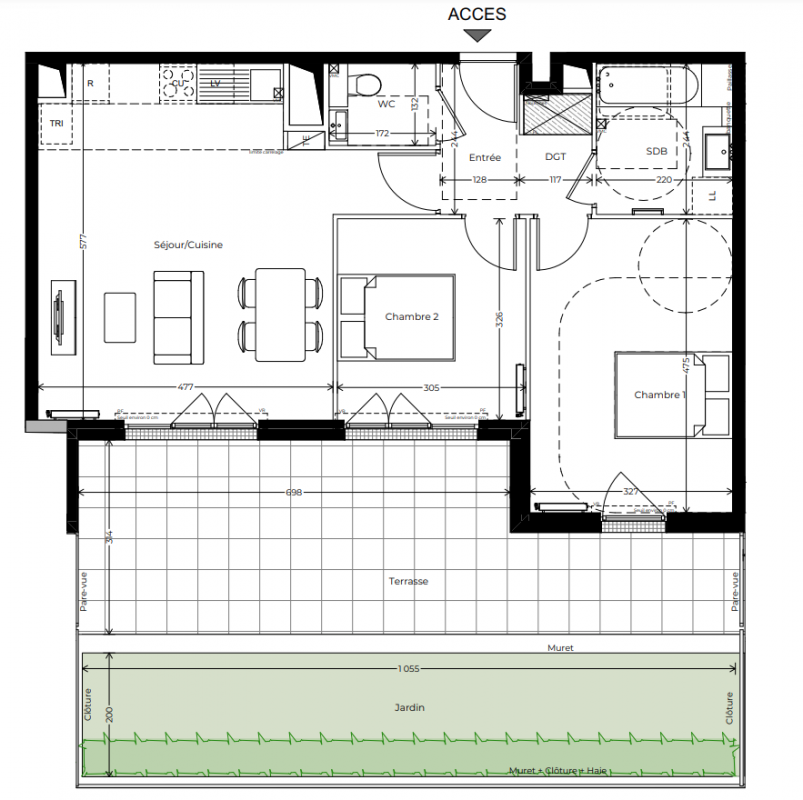 | Voir | Disponible | 412 000€ | A05 | Appt. | - | 60.5m2 | 0-RDC | Disponible | 412 000€ | Voir |
