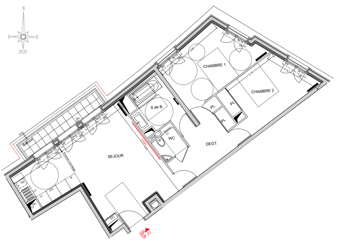 564 000€ Appt. T3 58.95m2 3ème