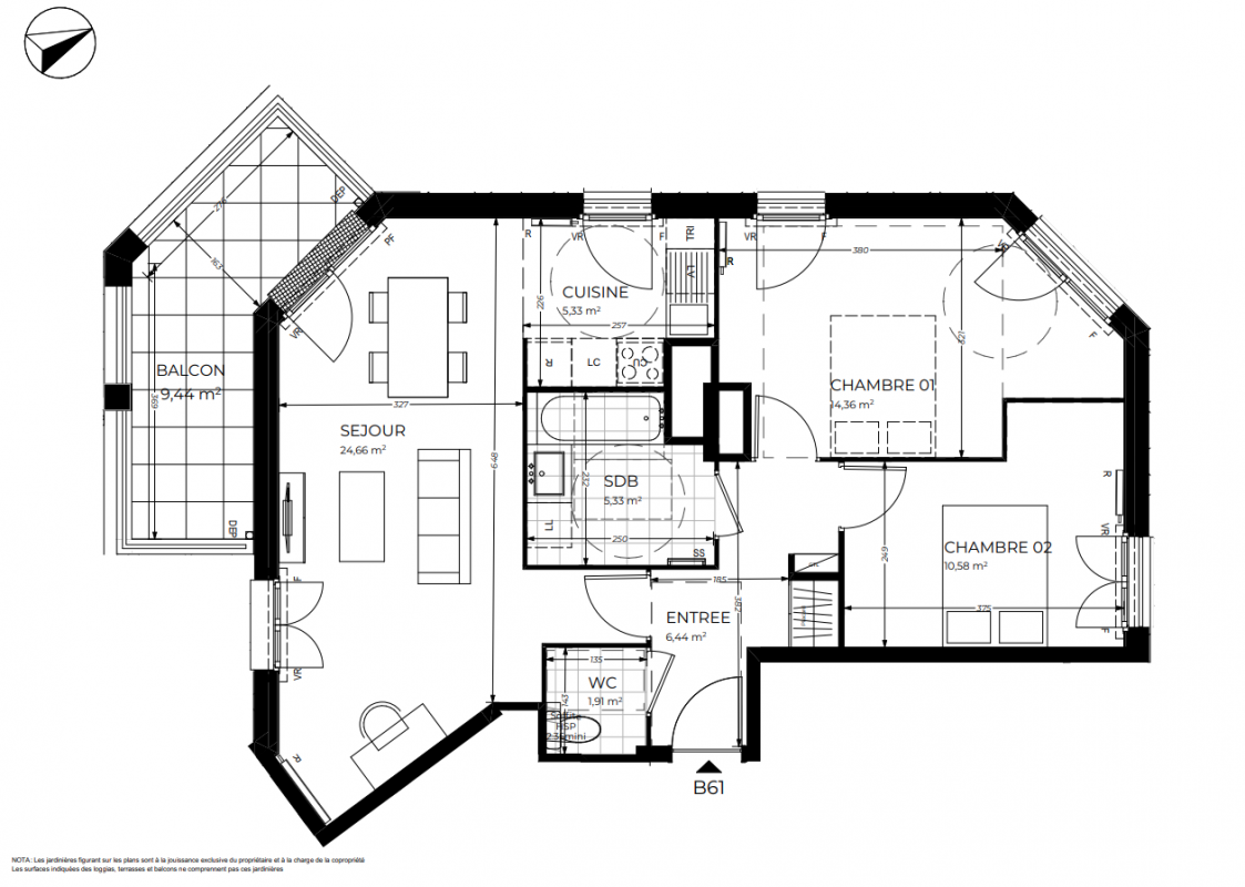 354 000€ Appt. T3 69.55m2 2ème
