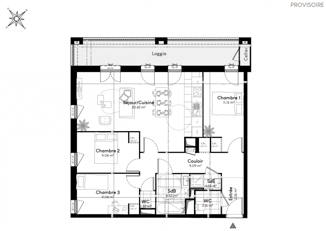 309 900€ Appt. - 60.09m2 3ème
