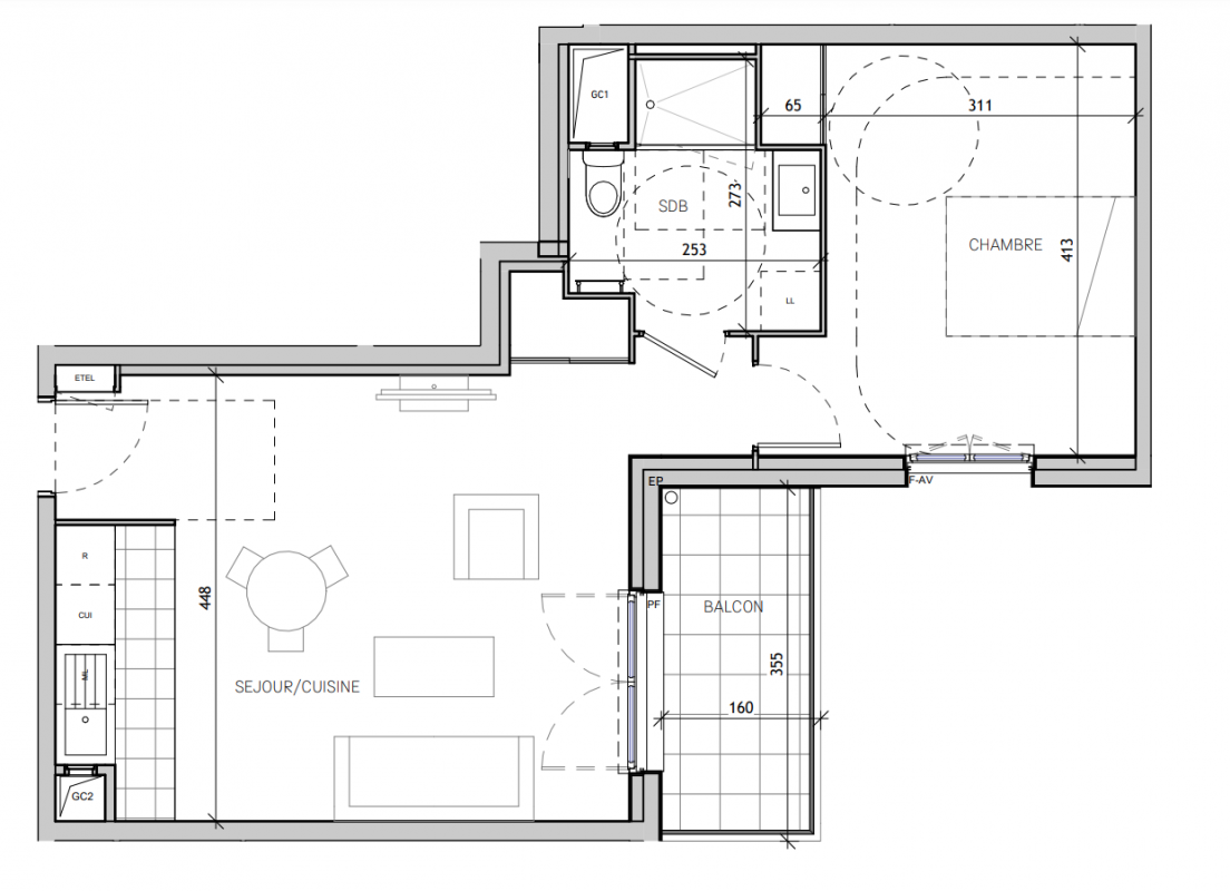 204 908€ Appt. T2 46.59m2 1er