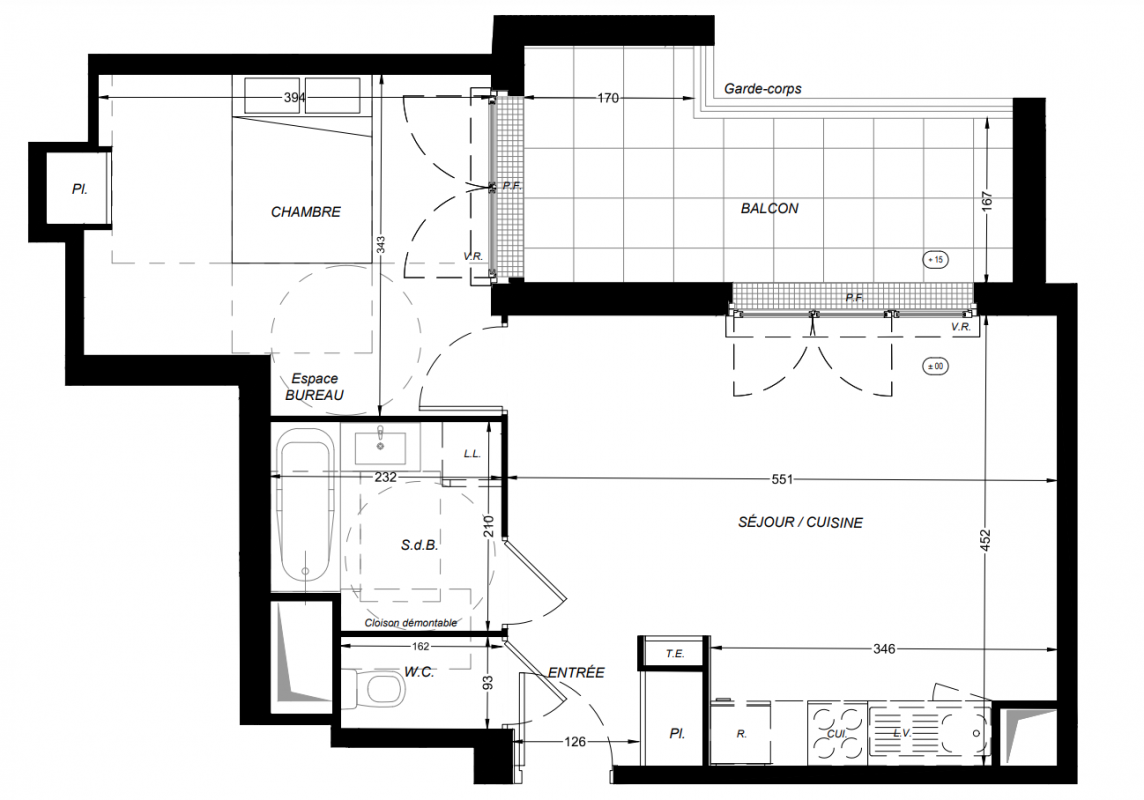 224 000€ Appt. T2 43.3m2 0-RDC