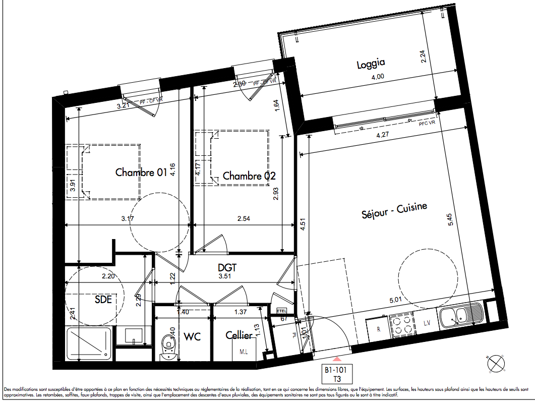 223 000€ Appt. T3 63.09m2 2ème