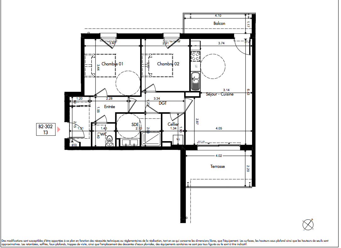 218 000€ Appt. T3 63.09m2