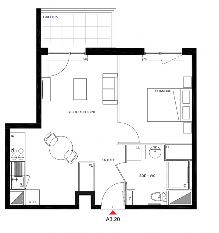 | Voir | Disponible | 219 120€ | A1.19 | Appt. | T2 | 46.38m2 | 1er | Disponible | 219 120€ | Voir |