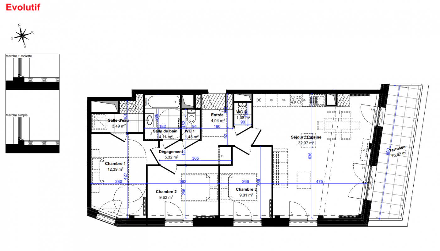 | Voir | Optionné | 438 000€ | E1 B106 | Appt. | T4 | 79.12m2 | 1er | Optionné Mais pas encore vendu 😉 | 438 000€ | Voir |
