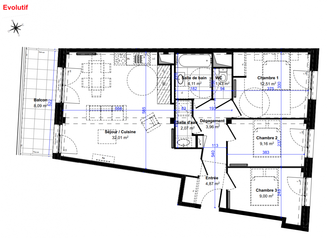 494 000€ Appt. T4 80.5m2 1er
