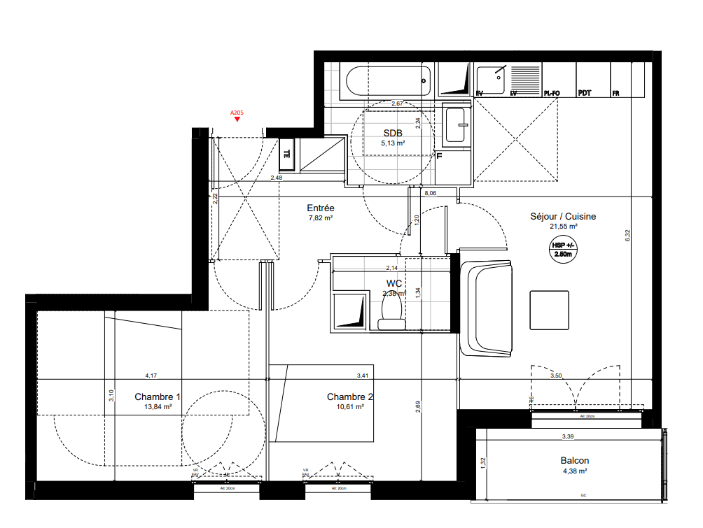 283 223€ Appt. T3 66.36m2 2ème