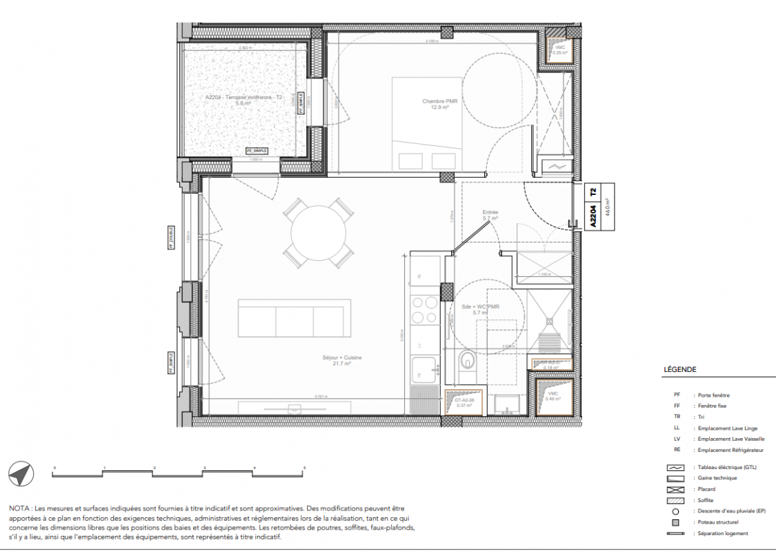 300 000€ Appt. T2 44.1m2 4ème