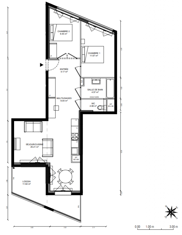 408 341€ Appt. T3 66.3m2 6ème