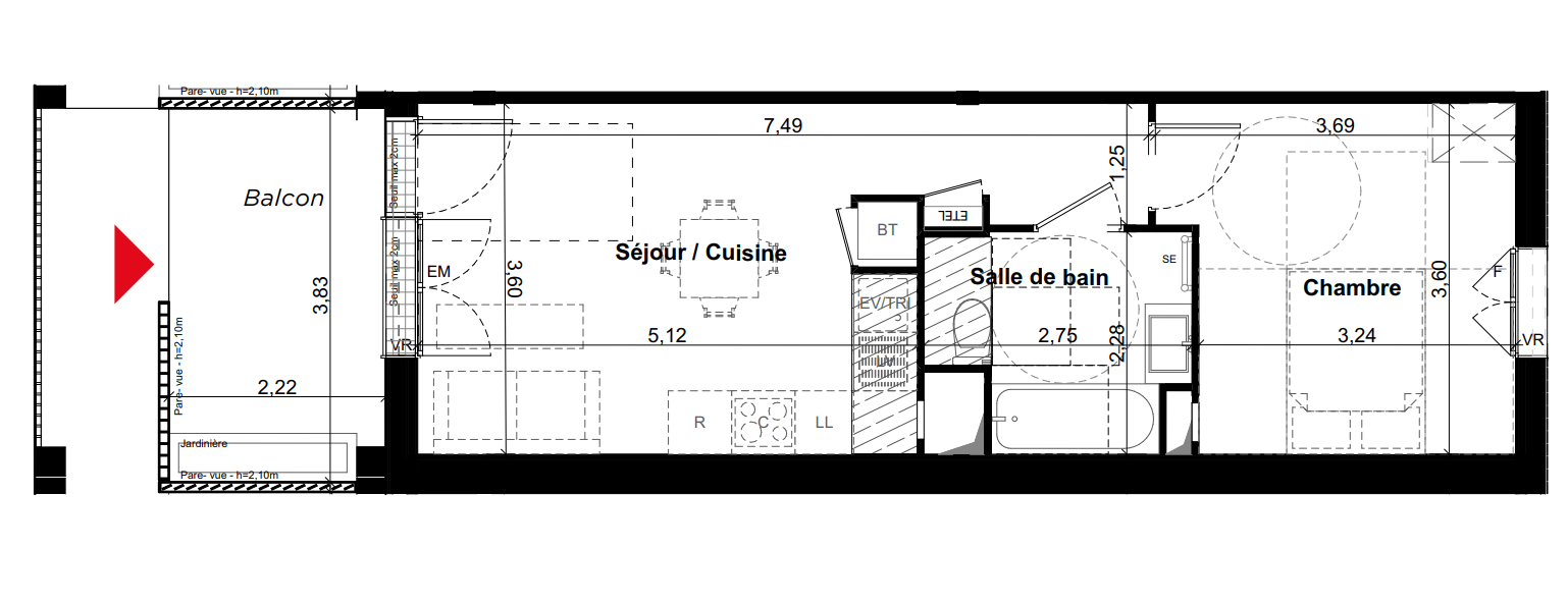 | Voir | Disponible | 179 900€ | A13 | Appt. | - | 37.66m2 | 1er | Disponible | 179 900€ | Voir |