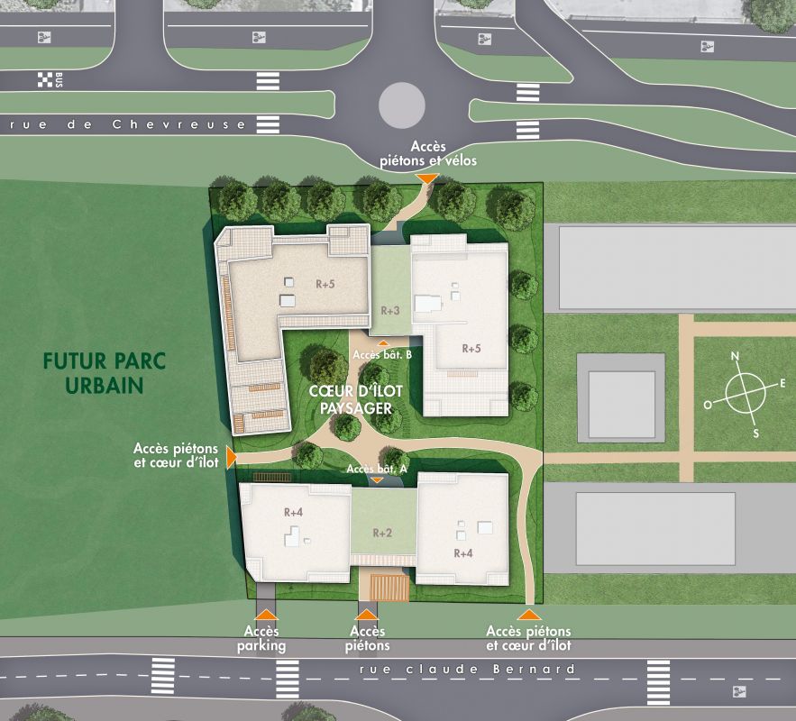 La résidence "JARDIN SAUVOLE" s'implante au sein de l'éco-quartier des 40 Arpents. Le bois apporte une note de raffinement. Afin de tirer le meilleur parti de son emplacement face au futur parc urbain, l’architecture multiplie les espaces extérieurs, dont de belles terrasses plein ciel disposées en cascade.
