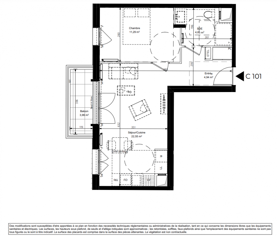 339 000€ Appt. T2 47.11m2 0-RDC