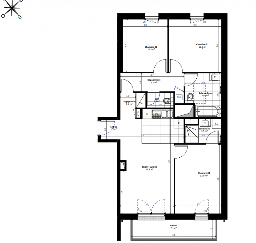 372 600€ Appt. T4 77.1m2 3ème