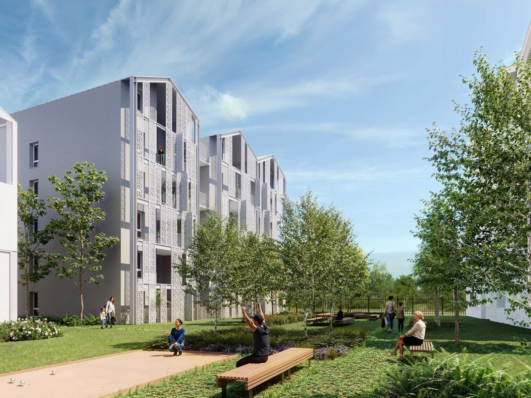 Le projet développe un agréable cœur d’îlot paysager doté d'espaces propices à la convivialité et la détente : tables de pique-nique, bancs et boulodrome.