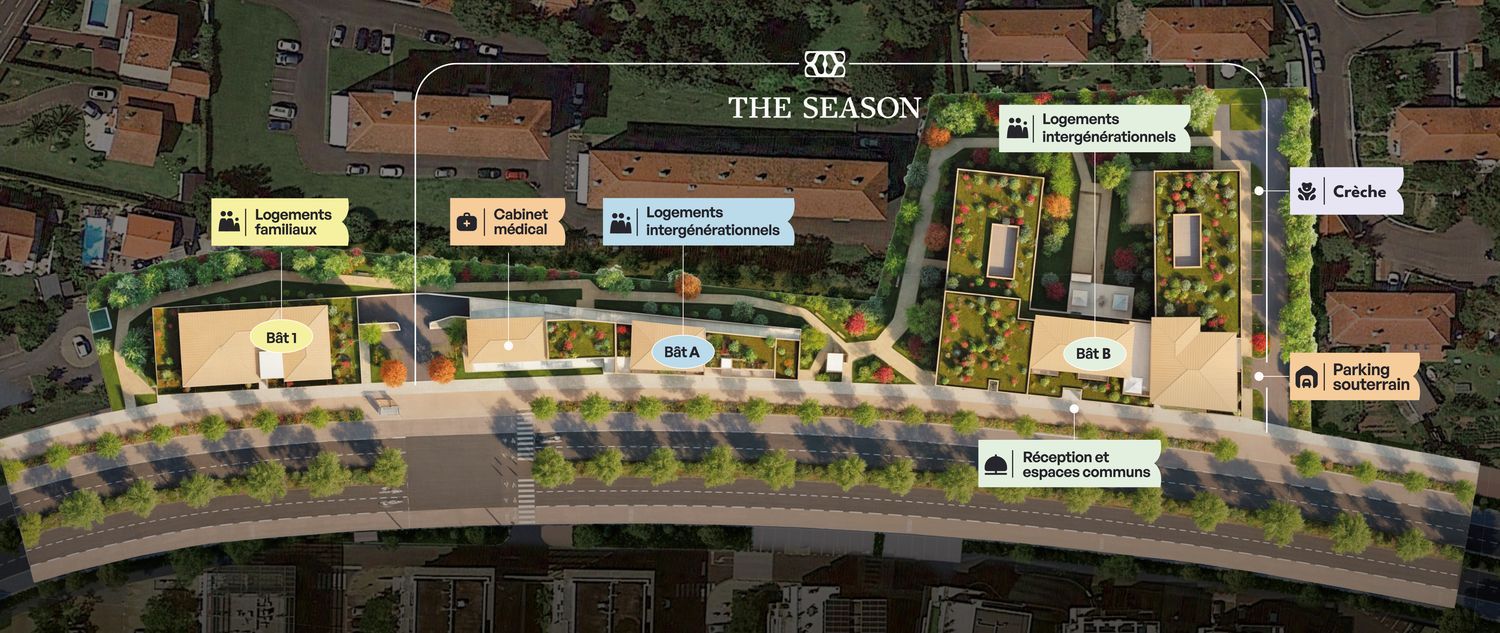 Le programme immobilier neuf "THE SEASON" situé dans la région Nouvelle Aquitaine (Pyrénées-Atlantiques) vous offre 23 maisons neuves de type Studio (T1) à partir de 119 900 €, 2 pièces (T2) à partir de 233 100 €, 3 pièces (T3) à partir de 368 000 €.