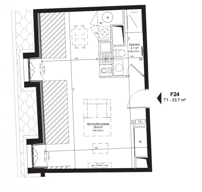 278 200€ Appt. Studio 32.4m2 3ème