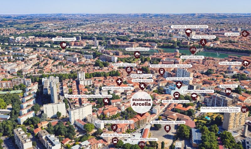 Le programme bénéficie d'une excellente accessibilité grâce à la proximité du métro ligne A - Saint-Cyprien République, du tramway T1 et T2 - Fer à Cheval, des lignes de bus et des pistes cyclables. Commerces, écoles, services et équipements culturels sont accessibles à pied.