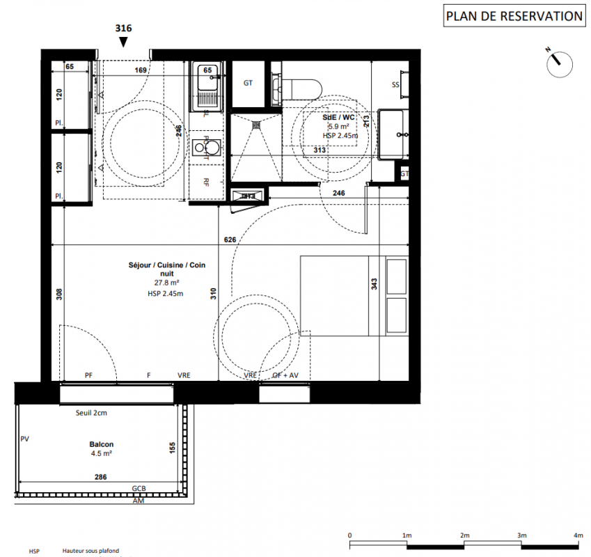 163 440€ Appt. Studio 29.2m2 0-RDC