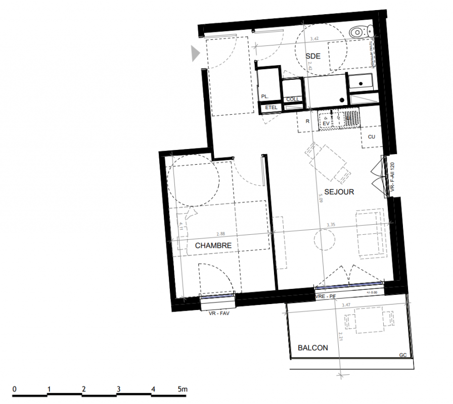 212 600€ Appt. T2 42.75m2 1er