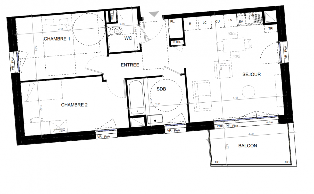 285 100€ Appt. T3 60.4m2 3ème